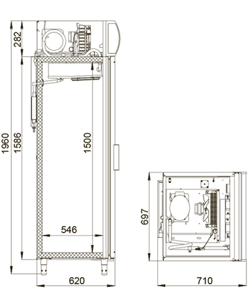 Шкаф холодильный Polair DP105-S имеет прочный цельнозаливной корпус из стали с полимерным покрытием. Конструкция герметична, оснащена эластичными уплотнителями с магнитными вставками. Динамическая система обеспечивает равномерное охлаждение продуктов во всем полезном объеме агрегата. Модель имеет электронное управление, клапан Шредера, механический замок. Действует система автоматической оттайки с испарением конденсата. Установлены ПЭН обогрева дверного проема и ПЭН обогрева трубки слива конденсата. Ножки регулируются по высоте. Панель-канапе и внутреннее пространство с подсветкой. Алюминиевая рама двери разборная, позволяет заменить стеклопакет. Шкаф предназначен для демонстрации и хранения продуктов. Техника рассчитана на работу при температуре окружающей среды до +32 °С и влажности воздуха до 60 %.
