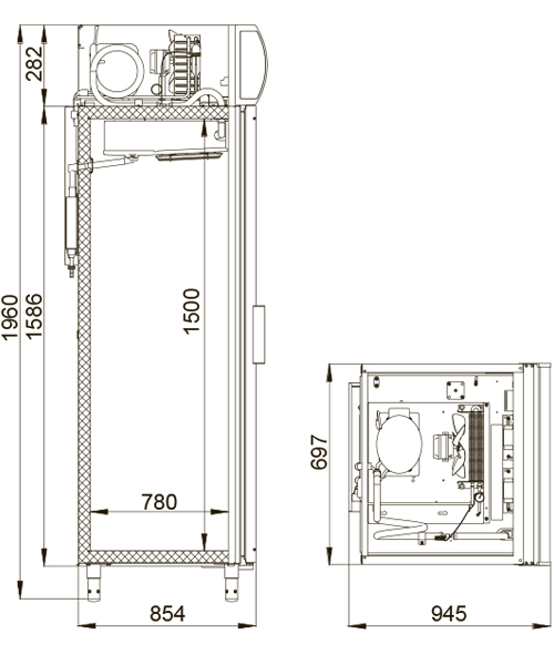 Шкаф холодильный Polair DM107-S (ШХ-0.7 ДС) имеет прочный цельнозаливной корпус из стали с полимерным покрытием. Конструкция герметична, оснащена эластичными уплотнителями с магнитными вставками. Динамическая система обеспечивает равномерное охлаждение продуктов во всем полезном объеме агрегата. Шкаф имеет электронное управление, жидкокристаллический дисплей, панель-канапе, клапан Шредера. Действует система автоматической оттайки с испарением конденсата. Ножки регулируются по высоте. Алюминиевая рама двери разборная, позволяет легко заменить стеклопакет. Вертикальная подсветка повышает качество экспозиции товара. Двери открываются более, чем на 180°, с фиксатором положения. Техника рассчитана на работу при температуре окружающей среды до +32 °С и относительной влажности воздуха до 60 %.