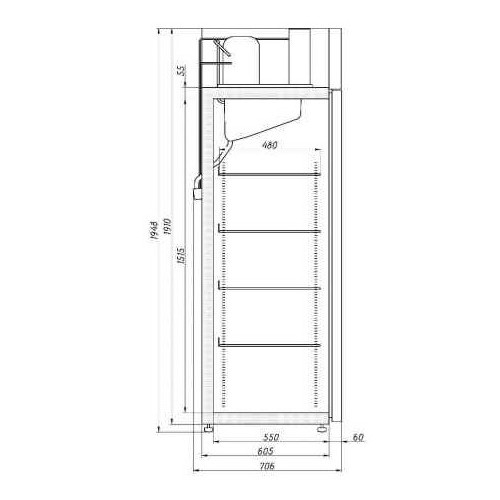 Холодильный шкаф Ариада Ария A750V с верхним расположением агрегата используется для охлаждения и кратковременного хранения продуктов на предприятиях общественного питания и торговли. Модель имеет объем 575 литров. Оснащена электронным блоком управления, испарителем с вентилятором и клапаном Шредера. Установлен компрессор Danfoss. Есть светодиодная подсветка. Цельнозаливной корпус облицован оцинкованной грунтованной сталью с полимерным покрытием. Действует автоматическая оттайка с выпариванием конденсата. Глухая распашная металлическая дверь с возвратным механизмом укомплектована эластичными уплотнителями с магнитными вставками и замком. Температурный режим варьируется от -5 до +5°С.