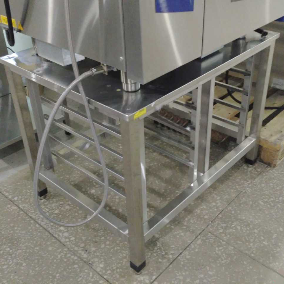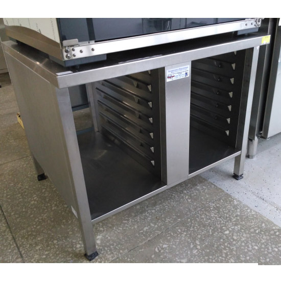 Подставка под пароконвектомат, конвекционную печь или печь для пиццы ППК-2 1000*700*700 мм. Полностью выполнена из пищевой нержавеющей стали. Цельногнутая столешница, снизу подложка из влагостойкой фанеры для жесткости конструкции.