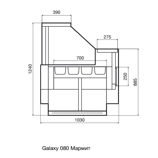 Мармит Dazzl Galaxy 080 длиной 1250 мм (без боковин) используется для демонстрации и кратковременного хранения готовых подогретых блюд и полуфабрикатов в торговых залах на предприятиях торговли. Отлично подойдет для магазинов и супермаркетов. Модель имеет закалённое стекло на гидролифтах. Площадь загрузки составляет 0,9 м². Температурный режим варьируется в диапазоне до +65°С. Рабочая поверхность выполнена из нержавеющей стали. Витрина оснащена цифровым термометром,