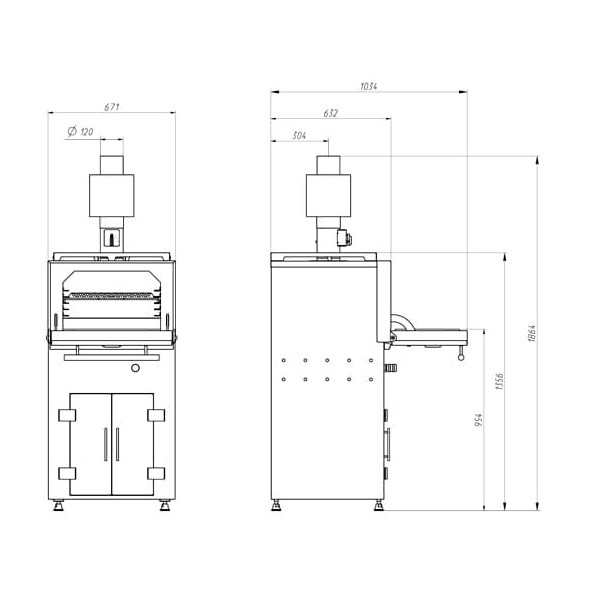 Габаритный размер без учета искрогасителя: 671x762x1555 мм