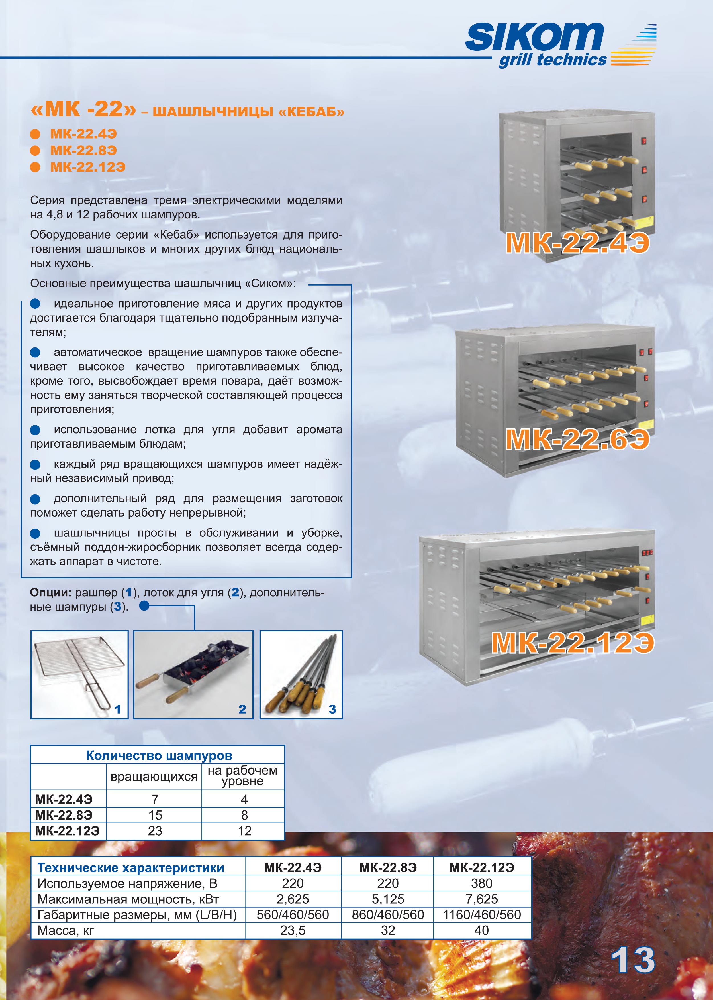 Электрический гриль Sikom МК-22.4Э предназначен для приготовления мясных, рыбных и овощных блюд на шампурах.