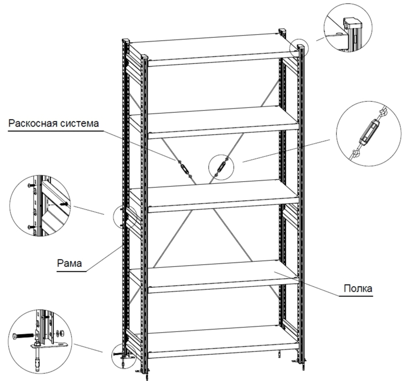 Стеллажи архивные собираются как отдельно так и в линию за счет отверстий расположенных сбоку стойки.