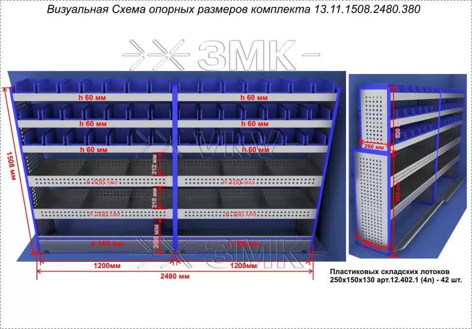 Полка (2 пр. для перег.) 1200х380х100 перф.в сборе |