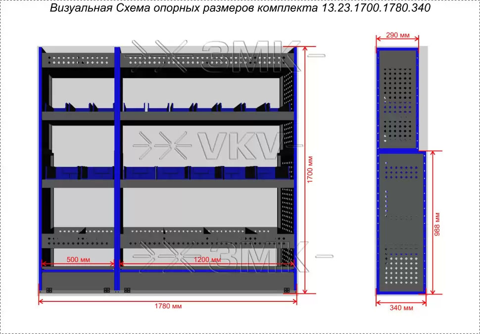 Полка 500х290х100 перф.в сборе, для 1 перег. |