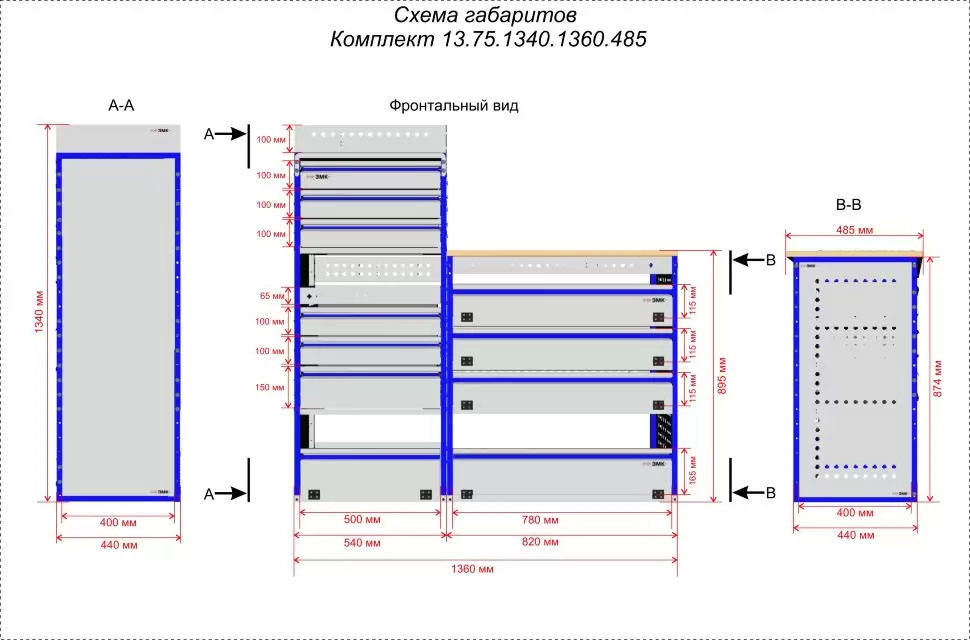 Комплект ЗМК 13.75.1340.1360.485 предназначен для комплексного оснащения сервисных автомобилей системой хранения инструмента с целью осуществления выездного сервиса, монтажа или ремонта. Используется в организациях, занимающихся ремонтом сельскохозяйственной и погрузочной техники, дорожно-ремонтных служб и других. Все элементы стеллажей изготовлены из высококачественной стали толщиной 1 мм. Рамы из профильной стальной трубы квадратного сечения 20х20 мм имеют порошковое полимерное покрытие синего цвета. Все выдвижные ящики, дверные блоки и откидные крышки оснащены специальными фиксаторами, которые не позволяют им выдвигаться и открываться при движении автомобиля. Шаг отверстий для крепления составляет 52 мм. Перфорированные стенки стеллажа позволяют фиксировать с помощью резиновых креплений вспомогательный инструмент или оборудование. Допустимая нагрузка на все ящики до 35 кг, на все полки до 50 кг, на столешницы до 100 кг. В комплект стеллажа входят все необходимые метизы, фиксаторы, кронштейны и усилители. Они поставляются в разобранном виде в надежной упаковке.