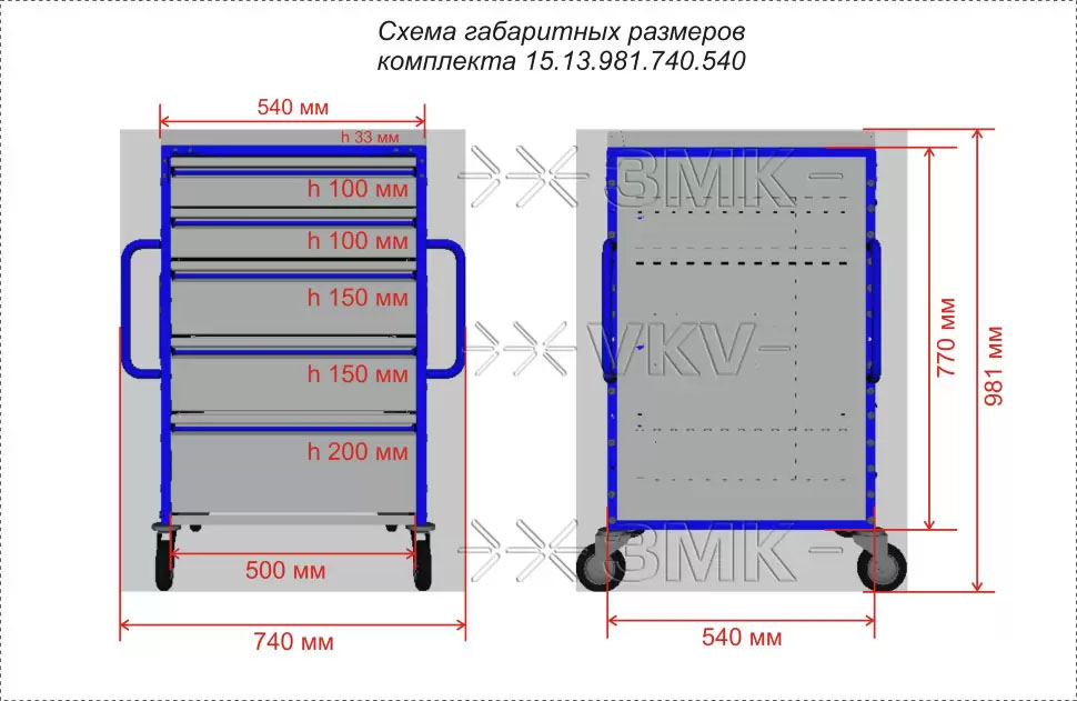 Комплект ЗМК 15.13.981.740.540 предназначен для комплексного оснащения сервисных автомобилей системой хранения инструмента с целью осуществления выездного сервиса, монтажа или ремонта. Используется в организациях, занимающихся ремонтом сельскохозяйственной и погрузочной техники, дорожно-ремонтных служб и других. Все элементы стеллажей изготовлены из высококачественной стали толщиной 1 мм. Рамы из профильной стальной трубы квадратного сечения 20х20 мм имеют порошковое полимерное покрытие синего цвета. Все выдвижные ящики, дверные блоки и откидные крышки оснащены специальными фиксаторами, которые не позволяют им выдвигаться и открываться при движении автомобиля. Шаг отверстий для крепления составляет 52 мм. Перфорированные стенки стеллажа позволяют фиксировать с помощью резиновых креплений вспомогательный инструмент или оборудование. Допустимая нагрузка на все ящики до 35 кг, на все полки до 50 кг, на столешницы до 100 кг. В комплект стеллажа входят все необходимые метизы, фиксаторы, кронштейны и усилители. Они поставляются в разобранном виде в надежной упаковке.