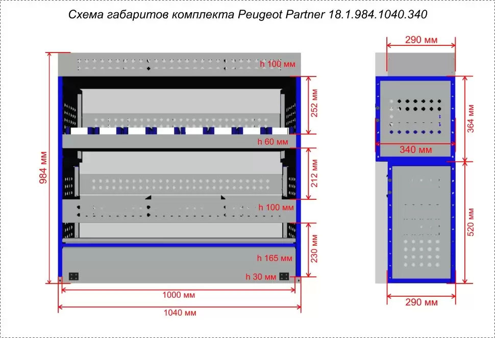 Комплект ЗМК 18.1.984.1040.340 предназначен для комплексного оснащения сервисных автомобилей системой хранения инструмента с целью осуществления выездного сервиса, монтажа или ремонта. Используется в организациях, занимающихся ремонтом сельскохозяйственной и погрузочной техники, дорожно-ремонтных служб и других. Все элементы стеллажей изготовлены из высококачественной стали толщиной 1 мм. Рамы из профильной стальной трубы квадратного сечения 20х20 мм имеют порошковое полимерное покрытие синего цвета. Все выдвижные ящики, дверные блоки и откидные крышки оснащены специальными фиксаторами, которые не позволяют им выдвигаться и открываться при движении автомобиля. Шаг отверстий для крепления составляет 52 мм. Перфорированные стенки стеллажа позволяют фиксировать с помощью резиновых креплений вспомогательный инструмент или оборудование. Допустимая нагрузка на все ящики до 35 кг, на все полки до 50 кг, на столешницы до 100 кг. В комплект стеллажа входят все необходимые метизы, фиксаторы, кронштейны и усилители. Они поставляются в разобранном виде в надежной упаковке.