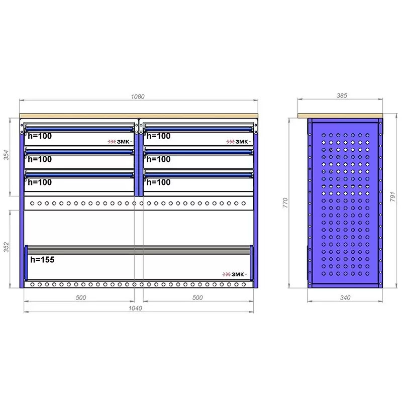 Комплект ЗМК 7.20.1186.1420.340 предназначен для комплексного оснащения сервисных автомобилей системой хранения инструмента с целью осуществления выездного сервиса, монтажа или ремонта. Используется в организациях, занимающихся ремонтом сельскохозяйственной и погрузочной техники, дорожно-ремонтных служб и других. Все элементы стеллажей изготовлены из высококачественной стали толщиной 1 мм. Рамы из профильной стальной трубы квадратного сечения 20х20 мм имеют порошковое полимерное покрытие синего цвета. Все выдвижные ящики, дверные блоки и откидные крышки оснащены специальными фиксаторами, которые не позволяют им выдвигаться и открываться при движении автомобиля. Шаг отверстий для крепления составляет 52 мм. Перфорированные стенки стеллажа позволяют фиксировать с помощью резиновых креплений вспомогательный инструмент или оборудование. Допустимая нагрузка на все ящики до 35 кг, на все полки до 50 кг, на столешницы до 100 кг. В комплект стеллажа входят все необходимые метизы, фиксаторы, кронштейны и усилители. Они поставляются в разобранном виде в надежной упаковке.
