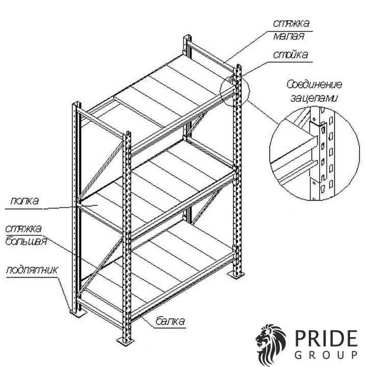 Рамы позволяют собирать стеллажи в линию любой длины.