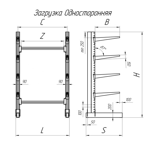 Вид стеллажа | Односторонний |