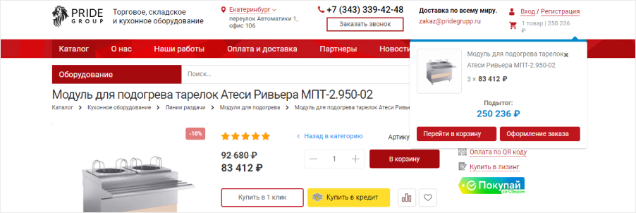 Добавьте товар в корзину нажатием кнопки «В корзину».